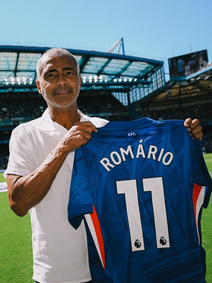 罗马里奥造访斯坦福桥并获赠11号球衣,切尔西官推:足球偶像!